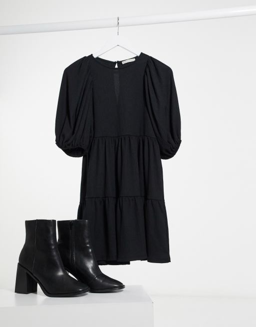 Stradivarius Sort Kjole Med Pufaermer Asos